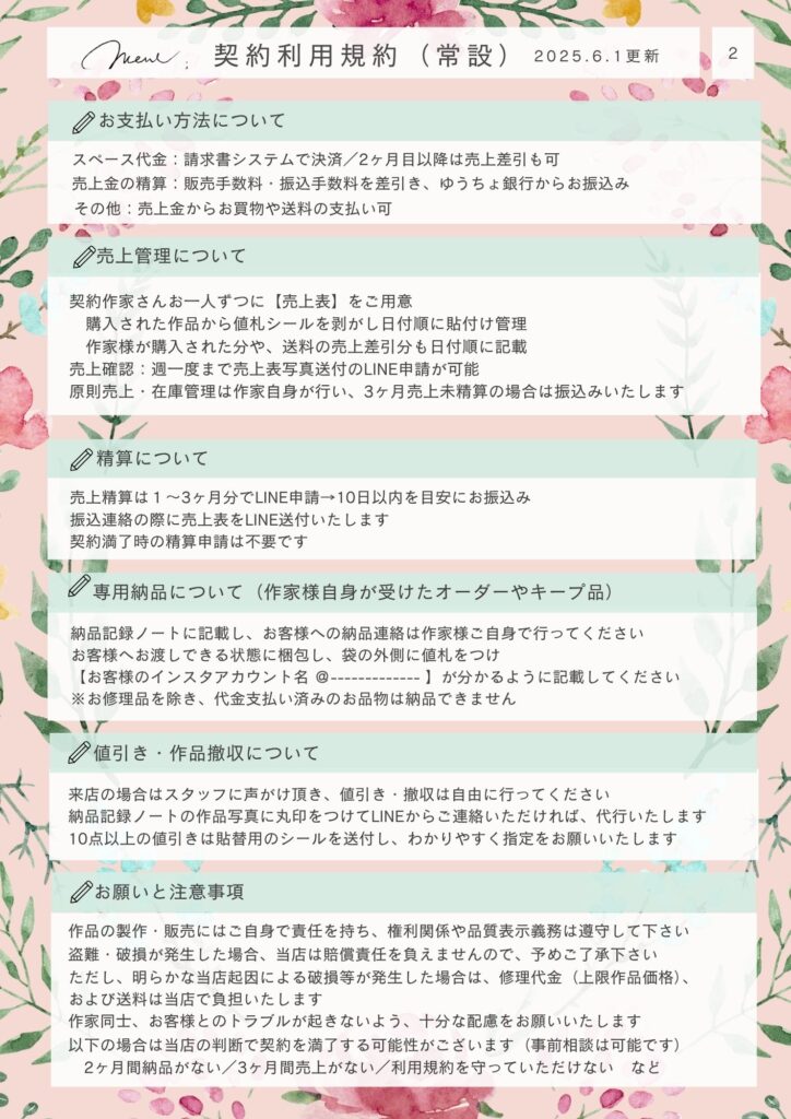 ※スペース代の口座振込は対応しておりませんので、ご了承ください。
