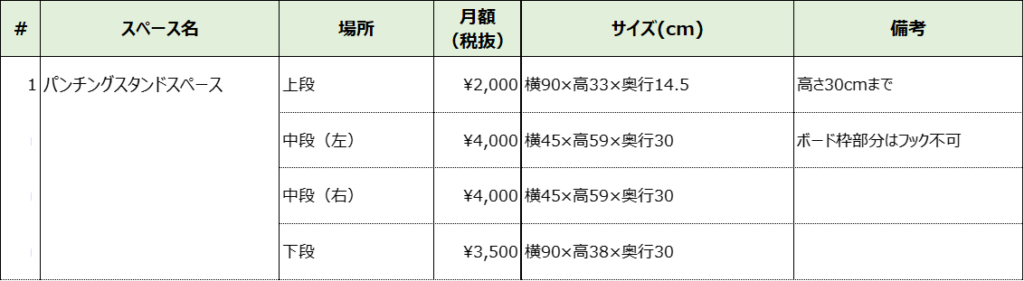 ①パンチングスタンドスペース